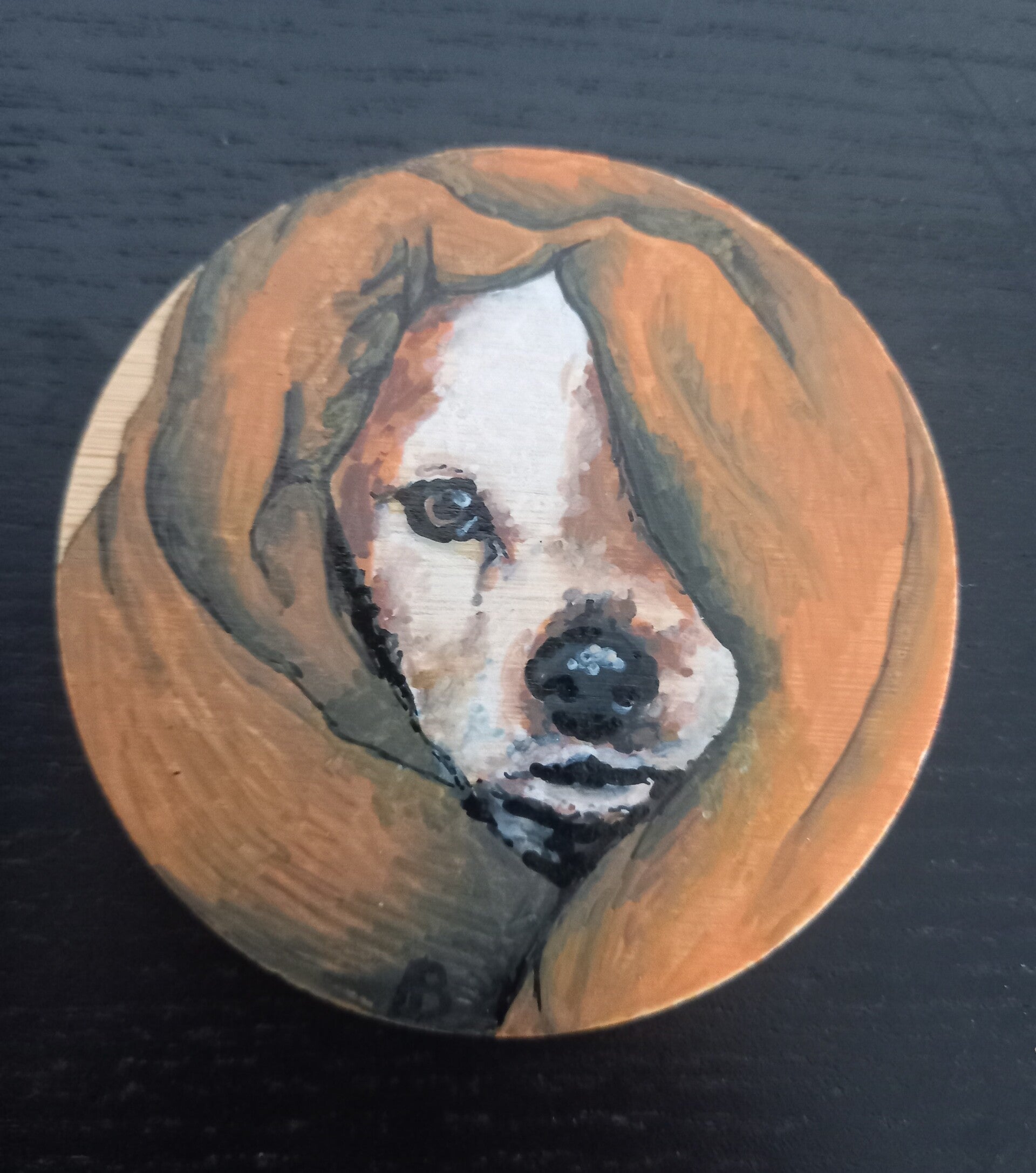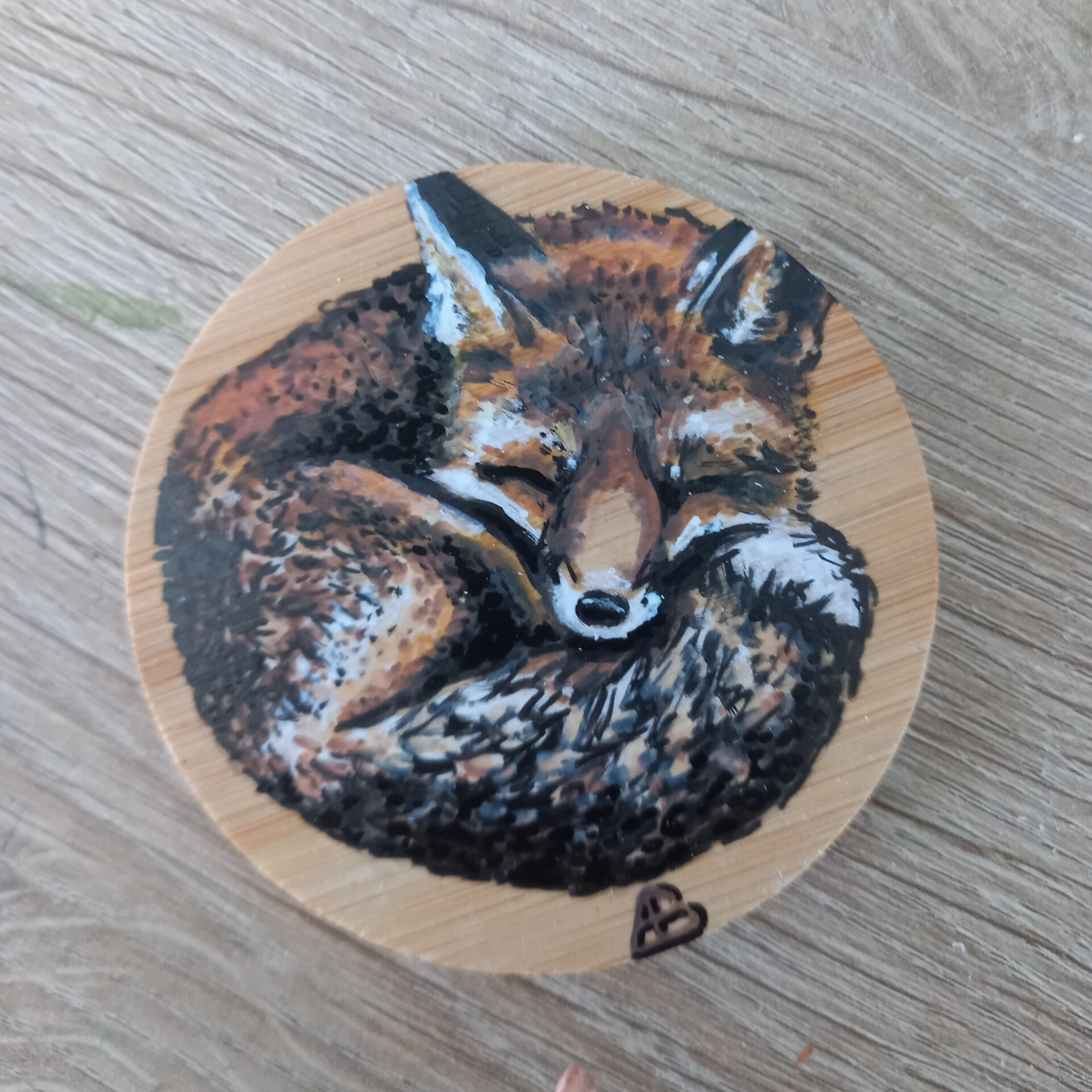 Dier op getekend met acrylstiften, afgewerkt met epoxy ter bescherming.